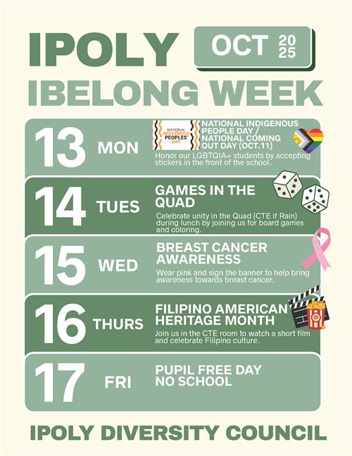 With only 500 students, IPoly provides a family-like environment. Students are given support and guidance to get into their college of choice. They are also encouraged to take concurrent college courses at Cal Poly and community colleges while in high school. IPoly students become global citizens, contributing to society through required community service hours.